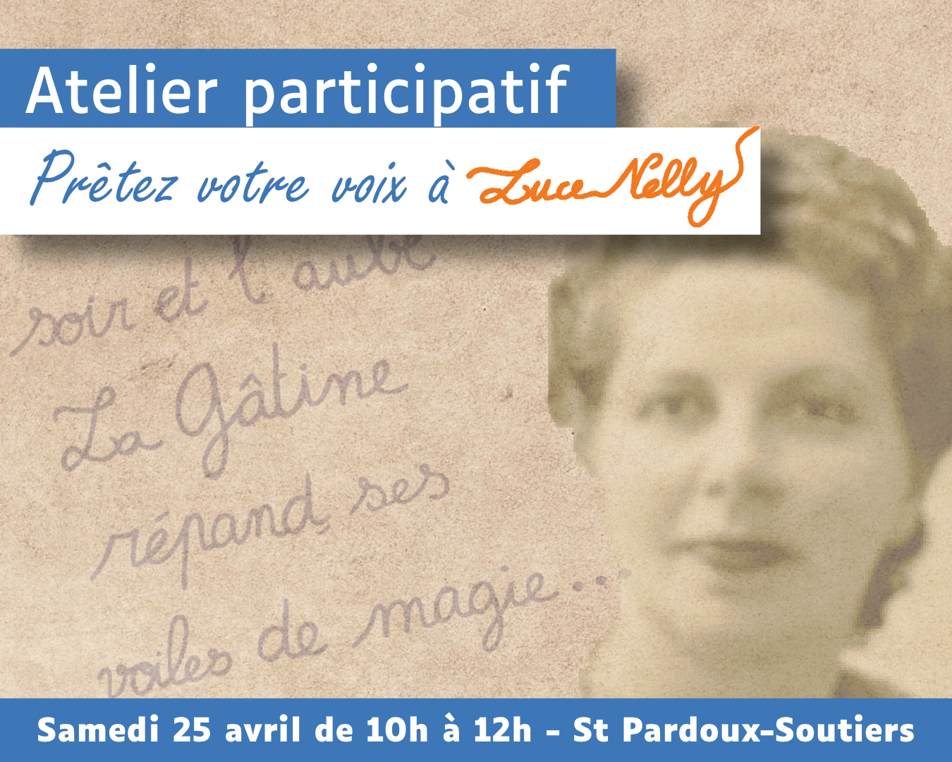 Le 25 avril, à l'occasion de l'exposition autour de Luce Nelly, Anne Guilbot, petite-fille de la poète et Pierre-Emmanuel conseiller numérique sur la commue vous proposent de venir poser votre voix et enregistrer des poèmes qui viendront s'ajouter ensuite via des QR codes aux œuvres exposées à la bibliothèque.