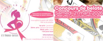 Le samedi 21 mars 2026, l'association Vivre en Rose à Saint-Pardoux-Soutiers organise un tournoi de belote.